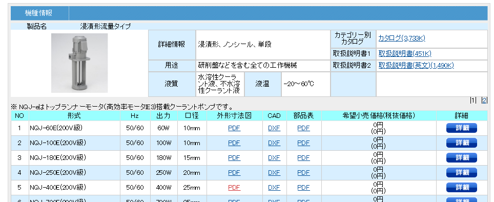 苏州上野 刘燕 TERAL日本泰拉尔泵NQJ-100E(400V級),泰拉冷却泵非自吸式,小至中流量中扬程,无密封,单段直动形,采用1无密封(无机械密封)结构。