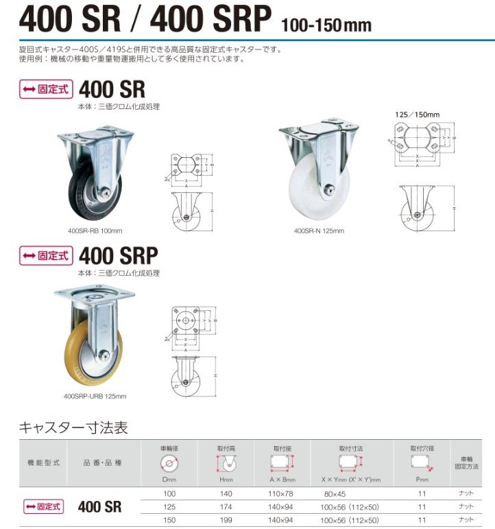 苏州上野刘燕hammer caster哈玛锤牌平板型插入式脚轮420EX·415EX车轮直径415-8EX-R75、一种高品质的旋转式大型脚轮,对载荷的抵抗力大,转弯顺畅。特长:可组合使用。在旋转部将钢球组装成上下两段。可以根据用途选择车轮的材质和车径。可以选择有无制动器。