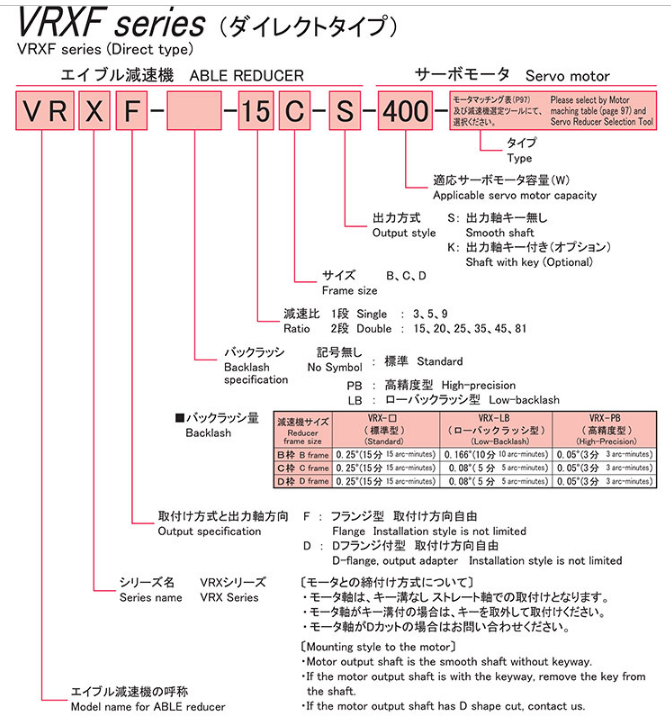 苏州上野刘燕批发销售日本NIDEC-SHIMPO电产新宝减速机VRXF-25C-K-200-T3特长:由于VRSF系列的更新产品,安装尺寸相同,可兼容通过新设计的齿轮和总骰子式结构提高传递扭矩※与以往产品相比、瞬时容许扭矩支持多个伺服马达的额定350%(E框支持300%)。采用新的叶齿轮进一步静音化※与以往产品相比采用高性能润滑脂,效率更高(可选择),漏油对策万全※与以往产品相比。也支持6000 rpm的高速输入。输出轴将要求多的直轴(无键槽)标准化。可通过直接连接方式和适配器、轴套连接方式任意一种方式安装到全世界的伺服电机上