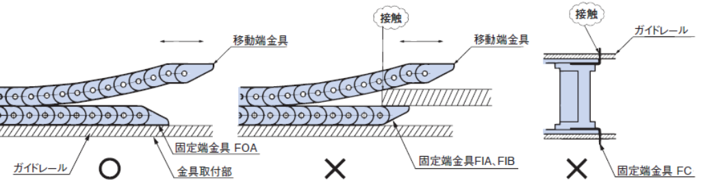 如果固定端支架为FIA或FIB,如下图(中)所示,固定端支架的安装部与电缆拖链接触,无法使用。